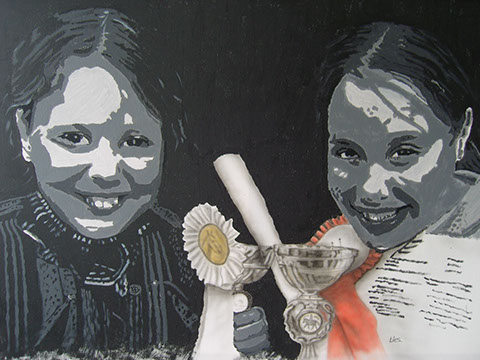 Bloedjes van mijn vriendin Airbrush met olieverf
