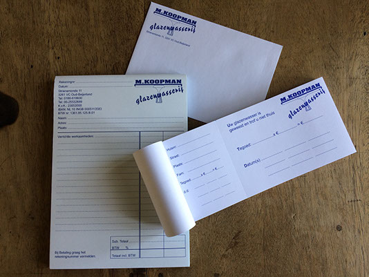 Ontwerp bonnenboekjes, enveloppen en doordrukbloks